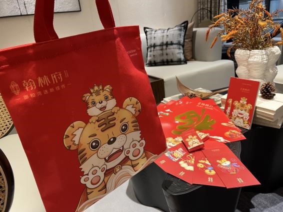 虎年福袋�帆布包——汲取传统中国红为主色调,结合虎年形象,寓意把美好统统“袋”回家;虎年福袋�红包——是新年给予的爱与祝福;虎年福袋�福字——无论是现在还是过去,福字都寄托了人们对幸福生活的向往;为迎接新年的到来,精准Get新年第一份虎气,翰林府限量版新春福袋内除了以上契合春节主题的内容物外,还备有定制虎年笔记本、扑克牌等精美好物,将虎年好运统统收入囊中。