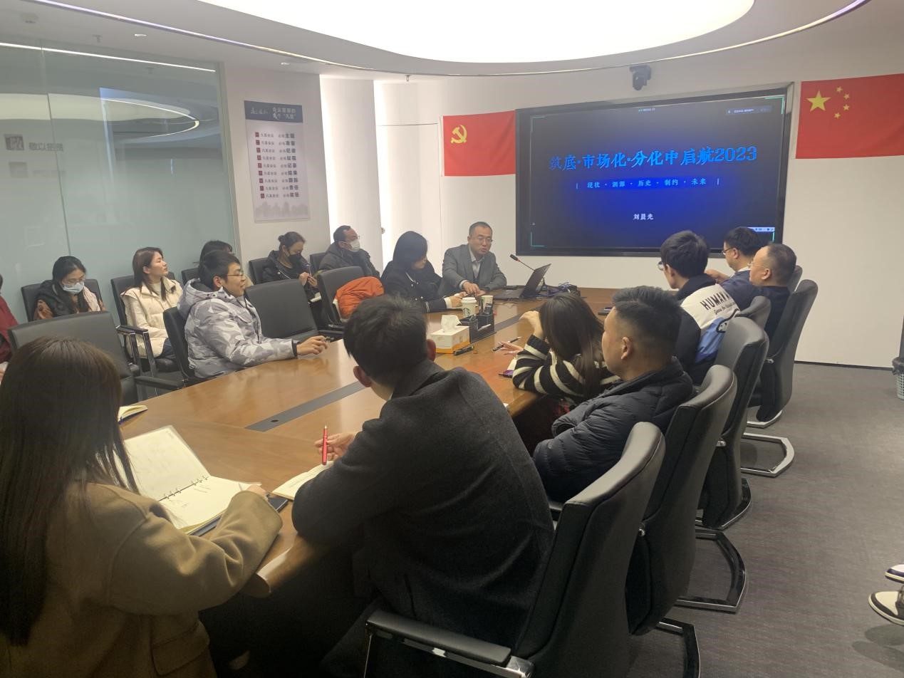 为更好认识房地产变局之下行业发展现状及预期,切实提升行业知识水平,明确2023年公司投资业务的发展方向,2月24日下午,伟德国际1946官网房产组织召开《行业总结与市场研判》分享交流会。特邀资深战略定位与管理咨询专家——上海克而瑞信息技术有限公司企业战略部总经理刘晨光作专题辅导。伟德国际1946官网房产及全资、控股子公司全体员工参加。